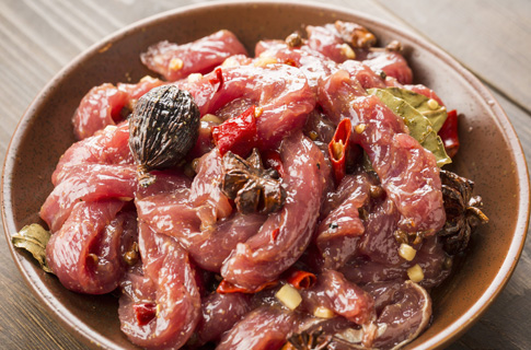 瘦肉、肥膘、水、万博足球app下载官网 复配万博足球app下载官网 、食盐充分搅拌至粘性
